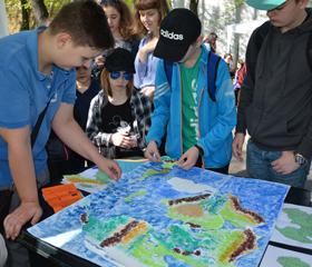 Přírodovědecká fakulta Ostravské univerzity již tradičně pro oslavy Dne Země, který pořádá Středisko volného času Moravská Ostrava vždy v Komenského sadech, připravila atraktivní popularizační program. Katedra fyzické geografie a geoekologie připravila ukázky, jak jednotlivé kontinenty Země do sebe tvarově zapadají a proč tomu tak je, dále se návštěvníci Dne Země seznámili s rozmanitostí živočichů i flóry na různých kontinentech. Katedra fyziky ukázala například možnosti měření v přírodě a biofyzici zase předvedli v praxi život rostlin – fotosyntézu, a dále skrytá i patrná rostlinná barviva včetně ukázek chromatografie pro oddělení rostlinných barviv. Chemici měli pro malé návštěvníky připraven například tajný vzkaz anebo zjišťování složení bílých prášků. Katedra sociální geografie a regionálního rozvoje zájemcům vysvětlovala, proč a u jakých potravin se obsah minerálů a vitamínů v potravinách během několika desetiletí velmi změnil. Každý se pak mohl dozvědět, kolik potravin „musíme“ sníst, abychom zajistili dostatek vitamínů a minerálů a odkud se vlastně tyto potraviny dostávají na náš stůl. U stánku studentského spolku SOVA, který působí na Katedře biologie a ekologie, se dost často „pištělo“, protože kromě jiného zde byla živá zvířátka – mnohonožka, švábi a pakobylky, které si děti mohly vzít do ruky. Také se zde návštěvníci seznámili se zajímavostmi ze života různých organismů, především zástupců bezobratlých. Dozvěděli se, co mohou najít nejen v naší přírodě, ale i v exotických krajinách, jakých velikostí a tvarů mohou tyto organismy dosahovat a opět byl představen i levný, po domácku sestrojený mikroskop, u kterého si pomocí chytrého mobilu mohli účastníci prohlédnout například mikroskopický pohled na peříčko. Informatici umožnili všem vyzkoušet si programování robota Karla a seznámit se s LEGO roboty i ovládáním těchto robotů.