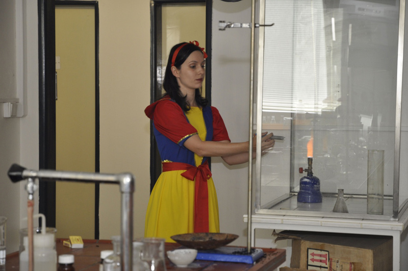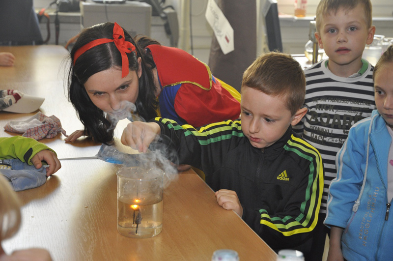 Děti z ostravské mateřské školy Blahoslavova navštívily katedru chemie Přírodovědecké fakulty Ostravské univerzity, aby poznaly i ten „vědecký“ svět kolem nás. Studenti doktorského studia na katedře chemie společně s doc. Marií Solárovou, která učí na katedře budoucí učitele chemie, připravili pro tyto malé návštěvníky poutavou chemickou pohádku o vysvobození hodné královny Chemily.