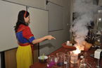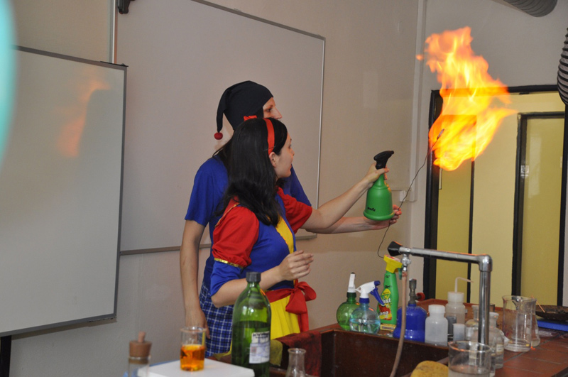 Vše se odehrávalo v kouzelném lese a díky hodné královně Chemile, hodné lesní víle Chemihurce, lesnímu skřítkovi Neposedovi a zlé lesní víle děti viděly, jak je chemie krásná, barevná i tajemná. Celý pohádkový příběh byl protkán chemickými pokusy (zápalná šňůra, dýmy, barvení vody, hořící gel, plamínky, ohně, barevná pěna i barevné roztoky,…), do kterých se děti aktivně zapojovaly a mohly tak s experimenty nejen pomáhat, ale vyzkoušet si některé pokusy i samy (například prskavky ve vodě, plamenové zkoušky či nafukování balónků na baňkách a hry s bublifukem).