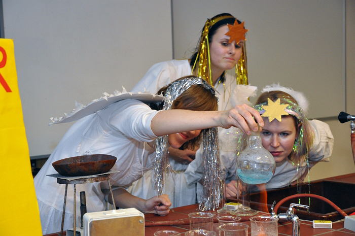 Ve stejný den odpoledne pak probíhalo představení pro talentované žáky v chemii. I chemičtí talenti si pochvalovali, že opět viděli nové pokusy, které ještě neznají. Ocenili také práci kameramanů a střihačky, která se téměř na profesionální úrovni zhostila zpracování předtočených televizních reportáží.